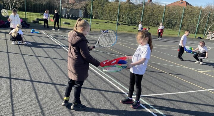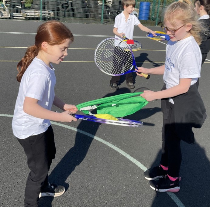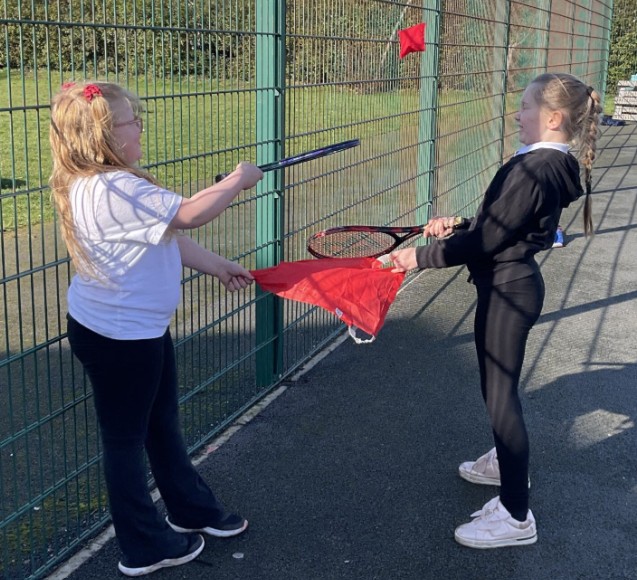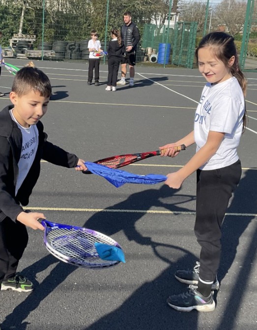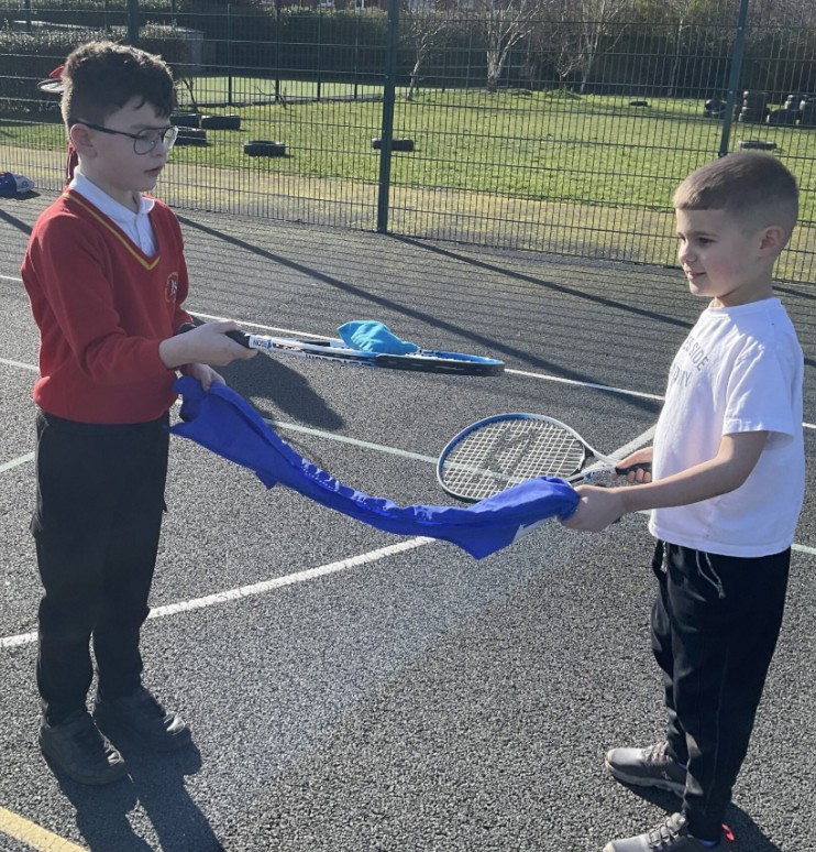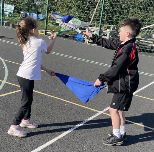 This week, the children were challenged to use a racket and throw a beanbag over the bib (which acted as a net) to their partner, who balanced it on their racket. This activity encouraged teamwork, communication and perseverance, and the children worked brilliantly together.
